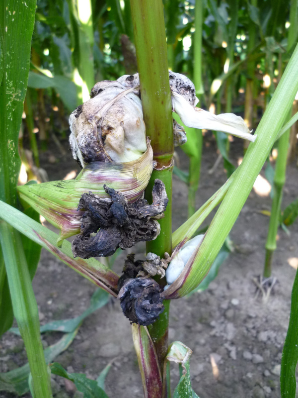 Ne pojavljuje se na mladom kukuruzu, već kada dostigne visinu preko 10 cm. Tada se javljaju na pojedinim nadzemnim dijelovima manje ili veće izrasline – mehuri koji su u početku svetle boje (sivo-zelene), a kasnije dobiju tamnu sivu boju, raspucavaju se i iz njih se oslobađa crna praškasta masa spora.